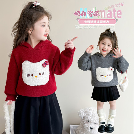 叮*镇收藏“YD2549卡通猫咪连帽毛衣”
